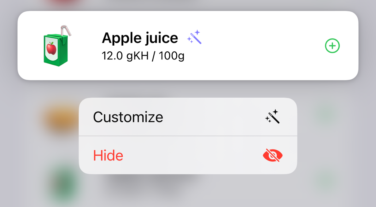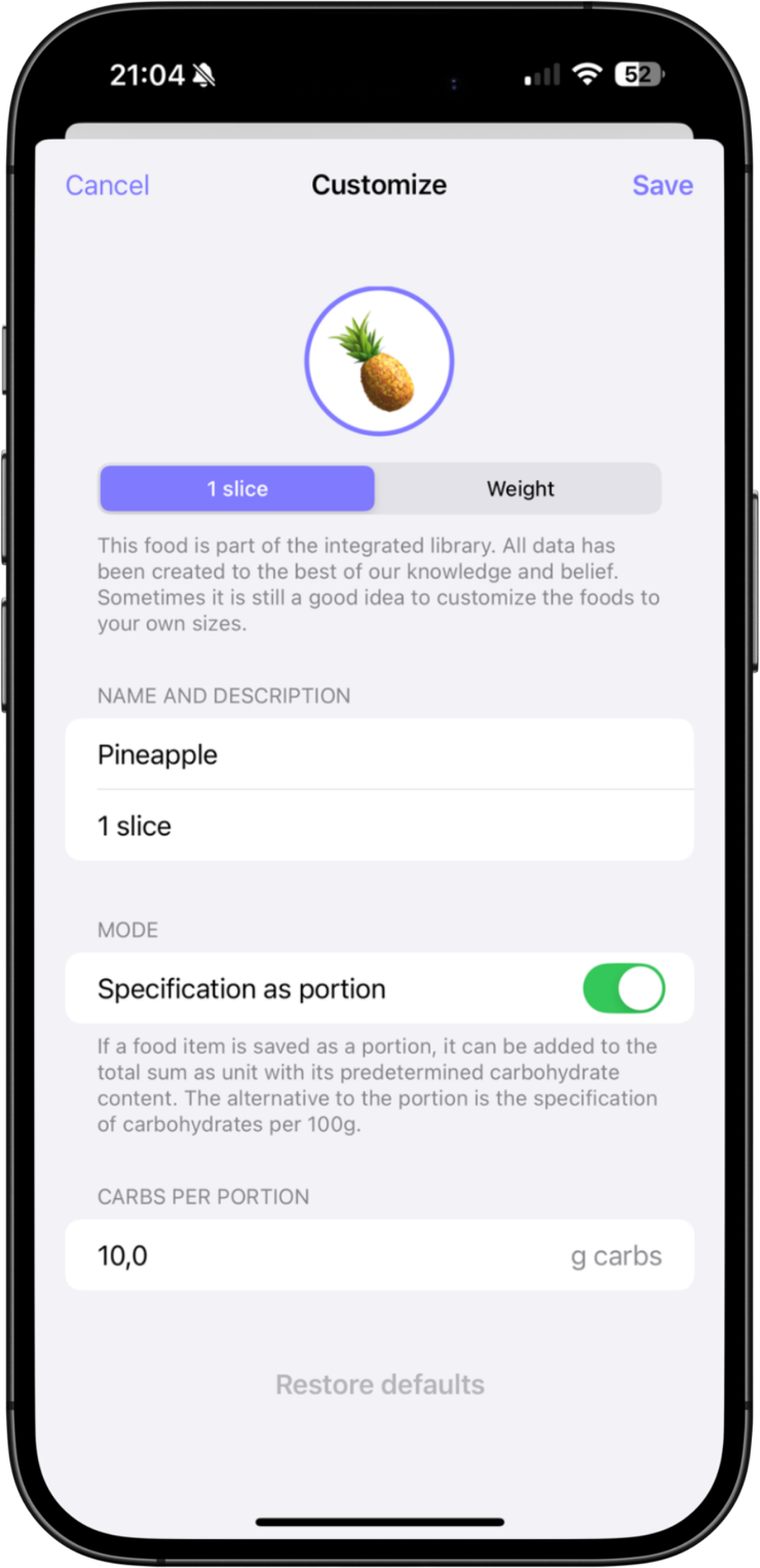 Existing food entries can also be adapted to your own needs.